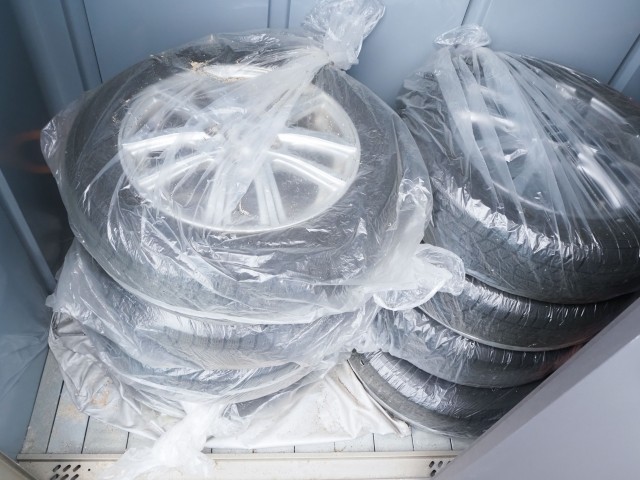 特に高価なスタッドレスタイヤは屋内保管が安全です。